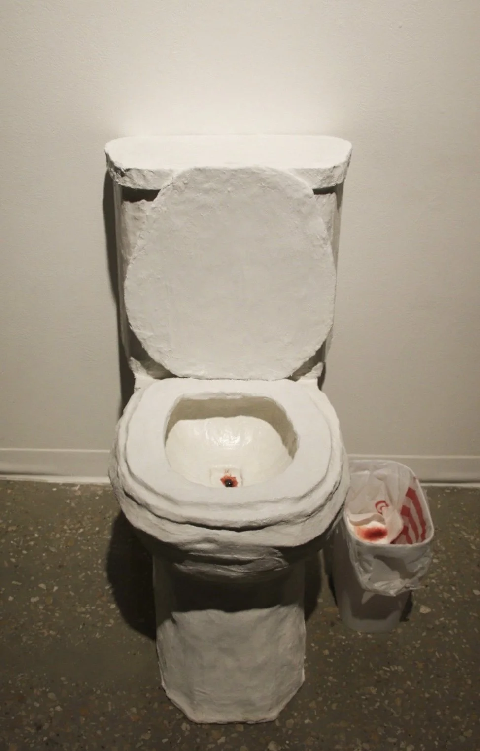 Smile, 2023, foamboard, clay, paper towel roll, artist tape, acrylic paint, napkin, mirror, glass cup, pliers, food coloring