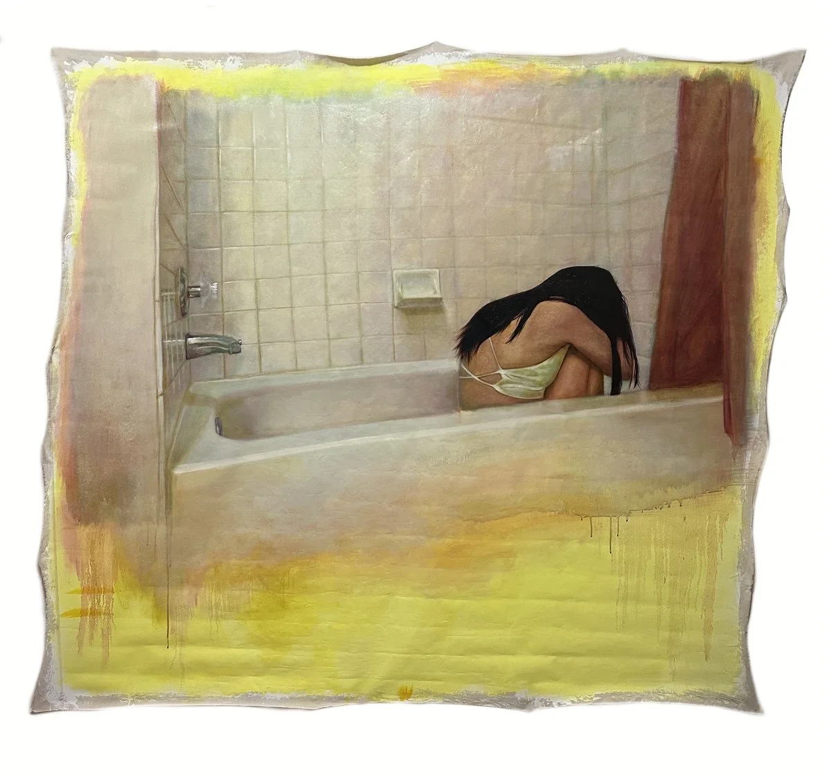 My Pathetic Comfort, 2025, oil paint on unstretched canvas, 65x72in